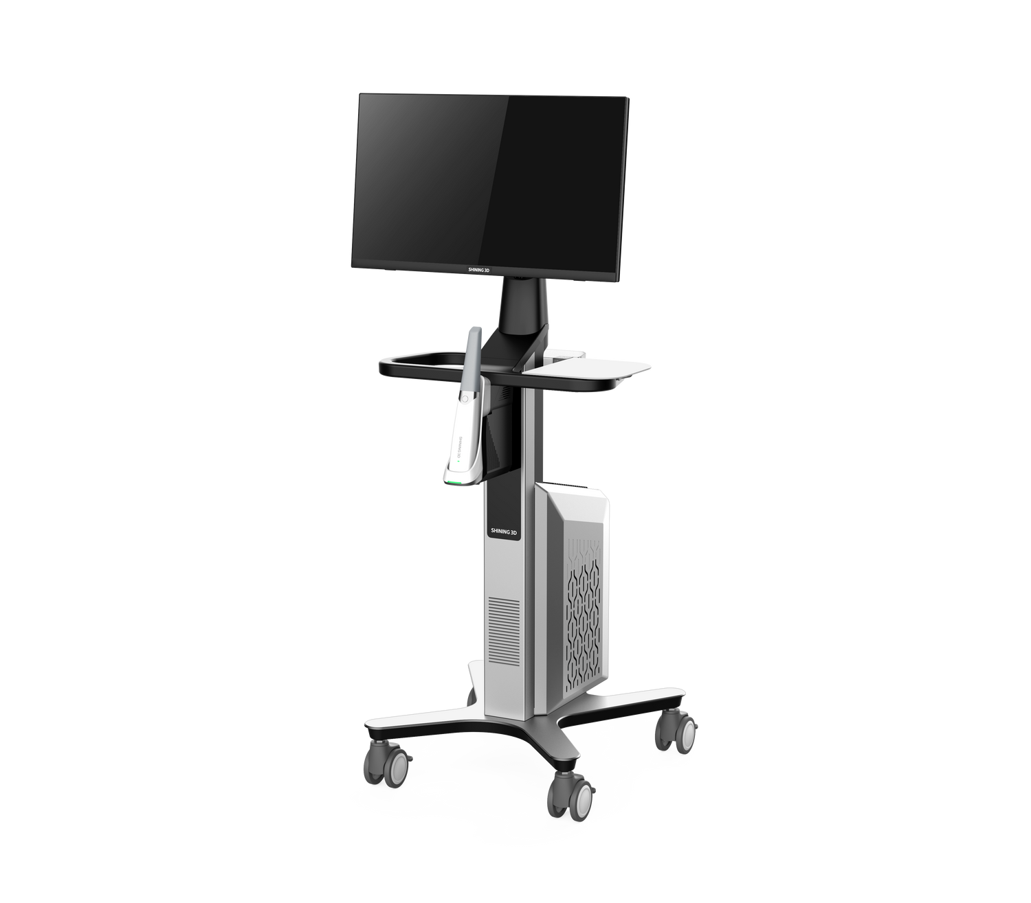 Touchscreen all-in-one AoStation is compatible with SHINING3D Aoralscan 3 intraoral scanner, allowing for the effortless mobile use of intraoral scanners in dental clinics